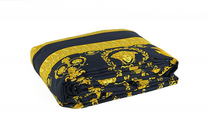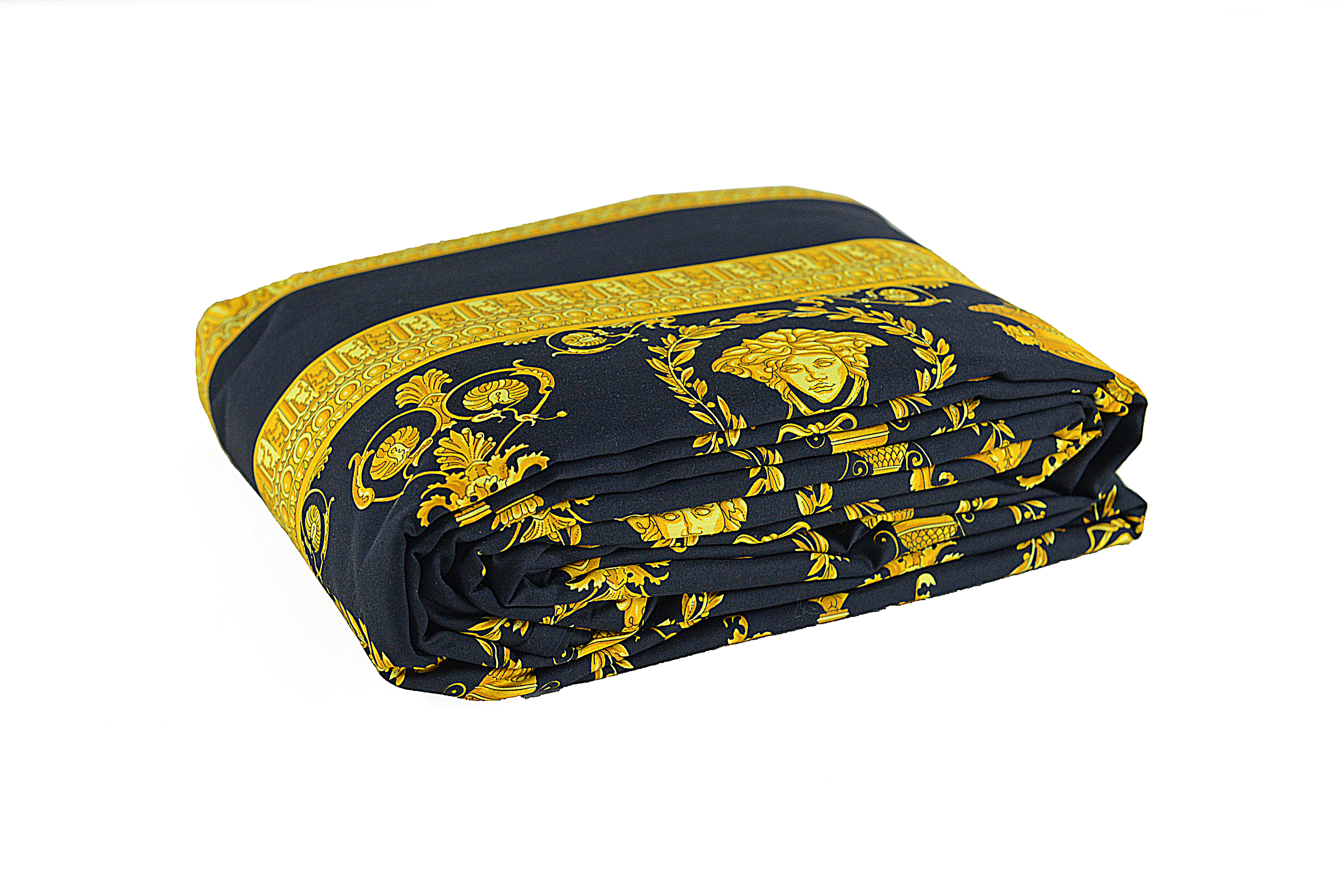 Пододеяльник из комплекта Barocco and Robe ярко отражает традиции Versace. Текстиль декорирован символикой бренда, созданной по античным мотивам, узор золотого оттенка великолепен на черном фоне. Элитное постельное белье сшито из натуральной хлопковой ткани, которая обеспечивает идеальный комфорт во время сна.